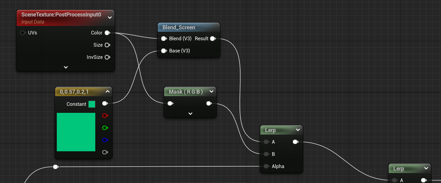 Colour blending itself is a whole other topic, but luckily Unreal provides with a whole heap of utility functions for blending colours . As a result there's a huge amount of creative license here to choose something that looks interesting and gives off the desired effect. I personally went for a more vibrant colour mixing than in the TV series as I thought it looked much more interesting, but it can be easily tweaked.